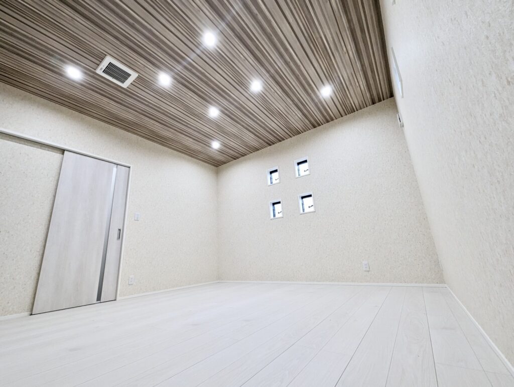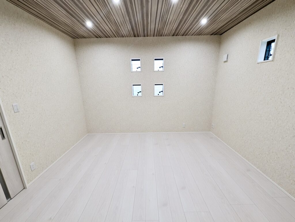 寝室は、白を基調とした壁紙と木目調のインテリアで、落ち着いたプライベートな空間となっています。